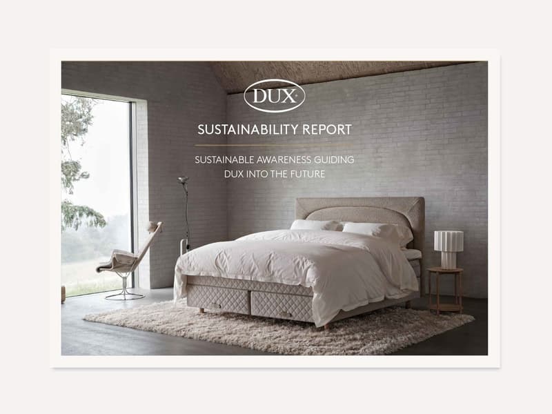 DUX-sengens innovative design består af komponenter, der kan tilpasses. De kan udskiftes, og nogle kan endda opgraderes. Idéen bag det fornybare design er, at DUX-sengen kan være den sidste seng, du nogensinde får brug for. Materialer af højeste kvalitet kombineret med 100 års svensk håndværk har resulteret i en seng, der er skabt til at holde. Kort sagt: Jo længere tid den holder, desto færre senge ender på lossepladsen.