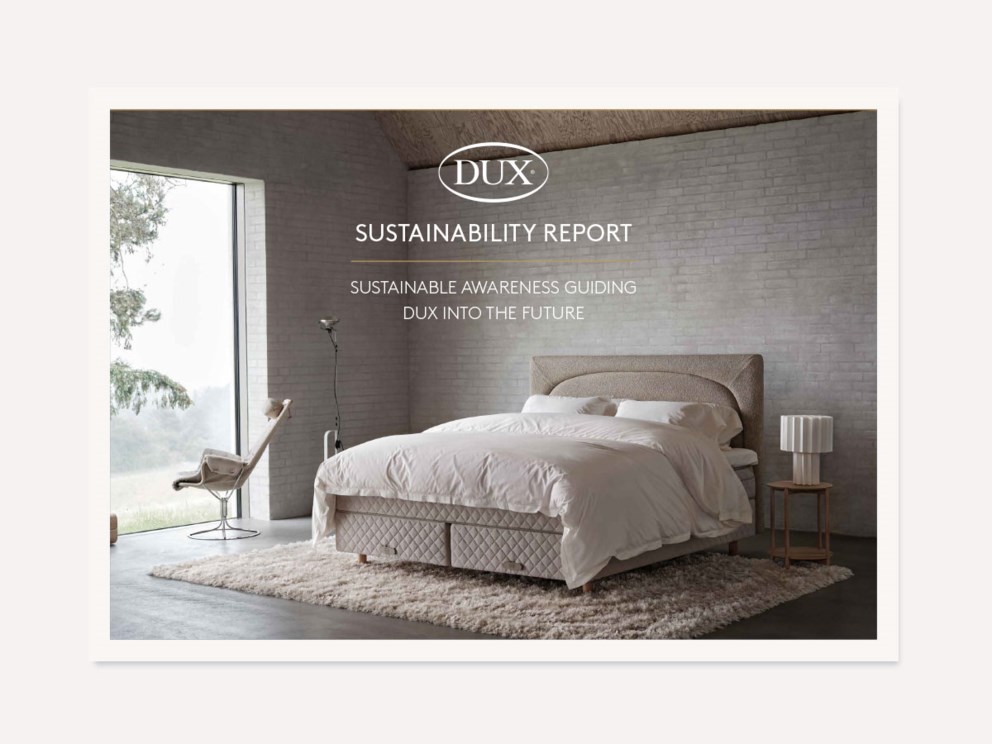 DUX-sengens innovative design består af komponenter, der kan tilpasses. De kan udskiftes, og nogle kan endda opgraderes. Idéen bag det fornybare design er, at DUX-sengen kan være den sidste seng, du nogensinde får brug for. Materialer af højeste kvalitet kombineret med 95 års svensk håndværk har resulteret i en seng, der er skabt til at holde. Kort sagt, jo længere tid den holder, jo færre senge ender på lossepladsen.