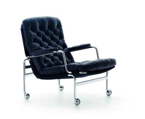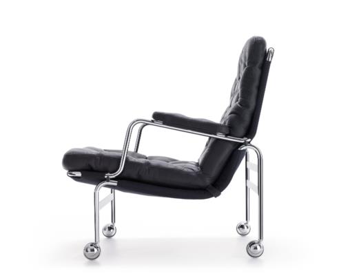 Ikonisk lænestol designet af Bruno Mathsson. Jetson-stolen afspejler både hans besættelse af komfort og en klassisk svensk tilgang til moderne design. Den har et skålformet sæde, en ergonomisk designet høj ryg med nakkestøtte. Drejefod i krom med en unik selvreturnerende mekanisme.