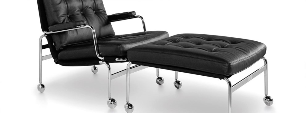 Denne klassiske elegante armstol blev designet af Bruno Mathsson i 1969 og var det første møbel i et succesrigt samarbejde, der varede i flere årtier. Denne elegante fodskammel er en vigtig del af kollektionen og giver din Karin-stol ekstra komfort – takket være polstrede hynder, der hviler på et forkromet stel med understøtning.