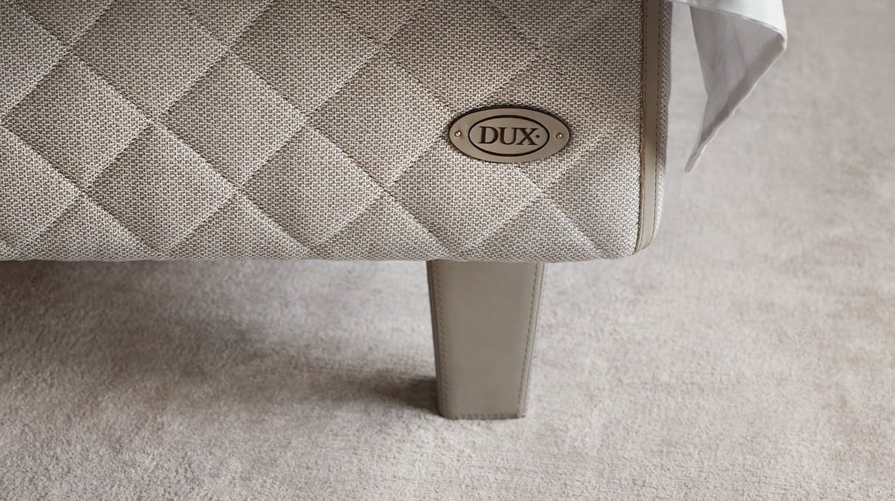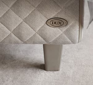 DUX Royal er en serie af matchende sengetilbehør, som f.eks. sengekapper og pyntepuder. Designet er udviklet i samarbejde med det legendariske Hotel d'Angleterre i København. En sengegavl med behagelig, støttende polstring. Det stilrene design er baseret på traditionelle dybe syninger og fås også med eller uden knapper.