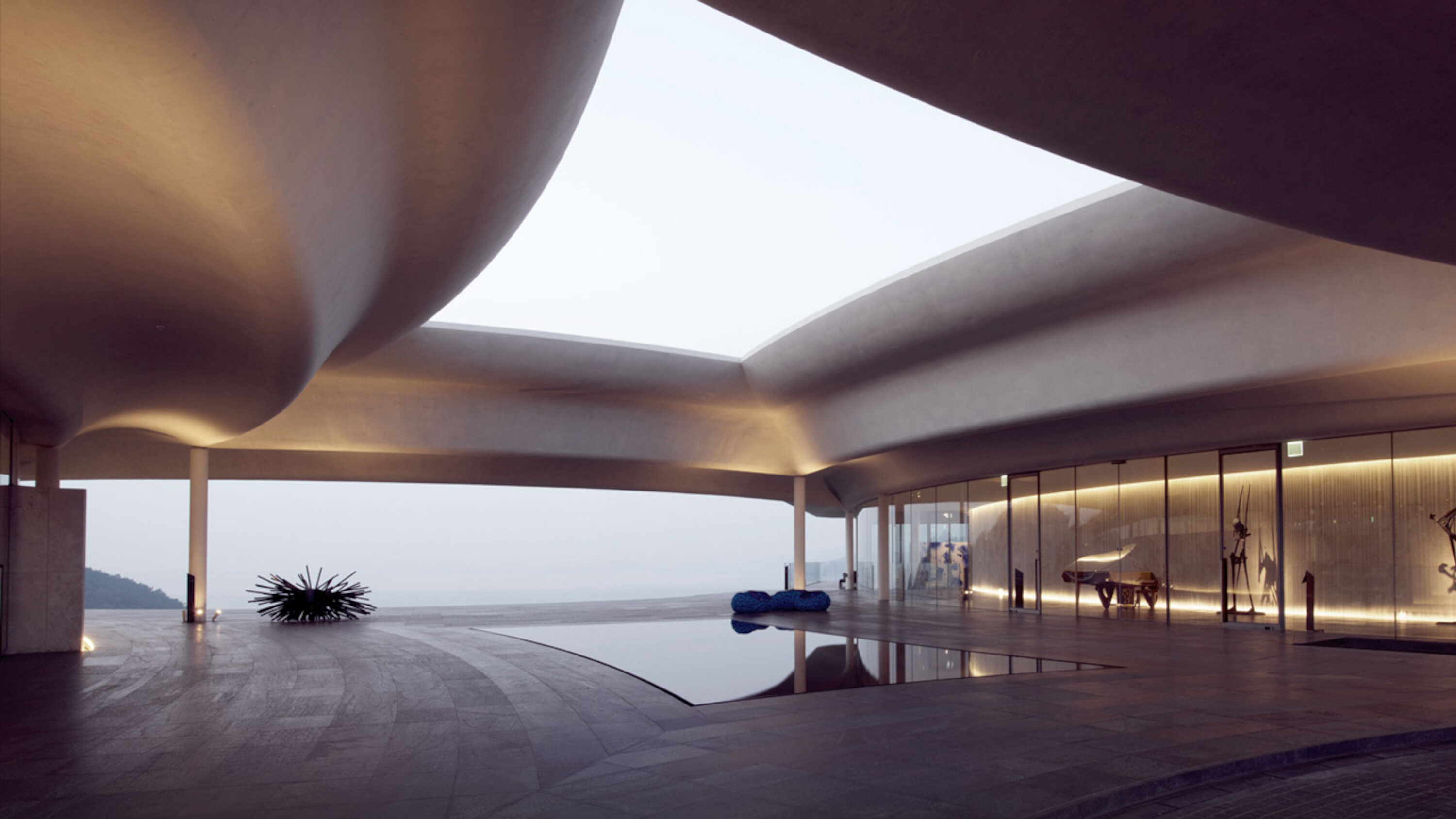 South Cape Spa and Suites er et resortkompleks syd for den koreanske halvø med udsigt over havet, og hvor du også kan spille golf. Luksusresortet, som ligger ud til vandet, giver gæsterne den ultimative afslapning. Betonvæggene bevæger sig som bølger langs bygningen og skaber et dynamisk udtryk, så det ser ud, som om bygningen svæver hen over himlen. Gæsternes værelser er udstyret med DUX-senge og Ligne Roset-møbler, og du kan nyde lyden fra et Geneva-lydsystem. Derudover er værelserne indrettet med Aesop-faciliteter. Gå ikke glip af de sjældne klaverer og kunstværker, der er at finde overalt i bygningen.