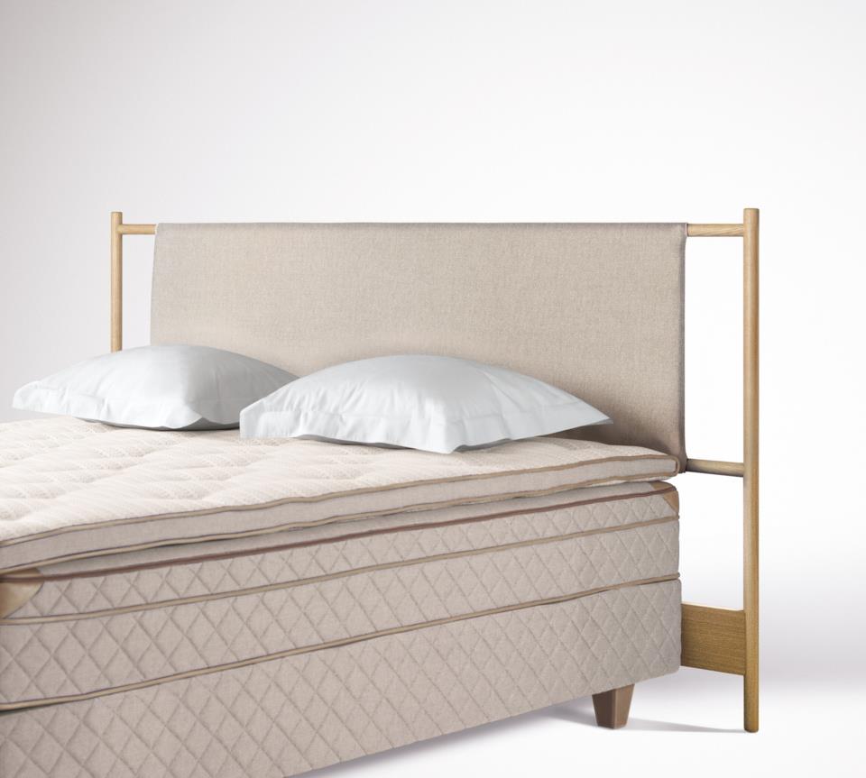 En omhyggeligt forarbejdet sengegavl i massivt træ, udstyret med innovativ Bang & Olufsen-teknologi. Designet og udviklet i et samarbejde mellem Bang & Olufsen og DUX.