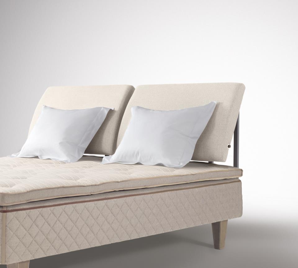 En lavere, manuelt justerbar sengegavl, formede puder, perfekt til læsning.